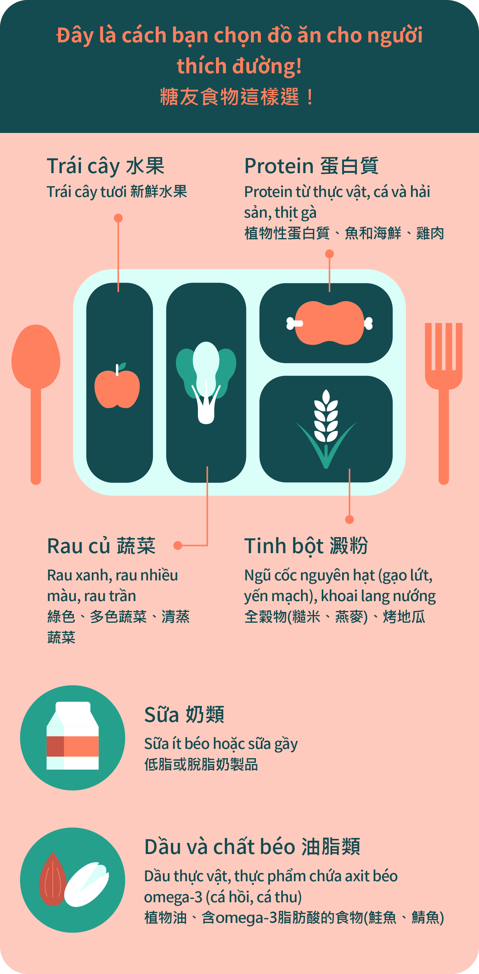 Chế độ ăn uống lành mạnh: Ít dầu, ít đường, ít muối, nhiều chất xơ