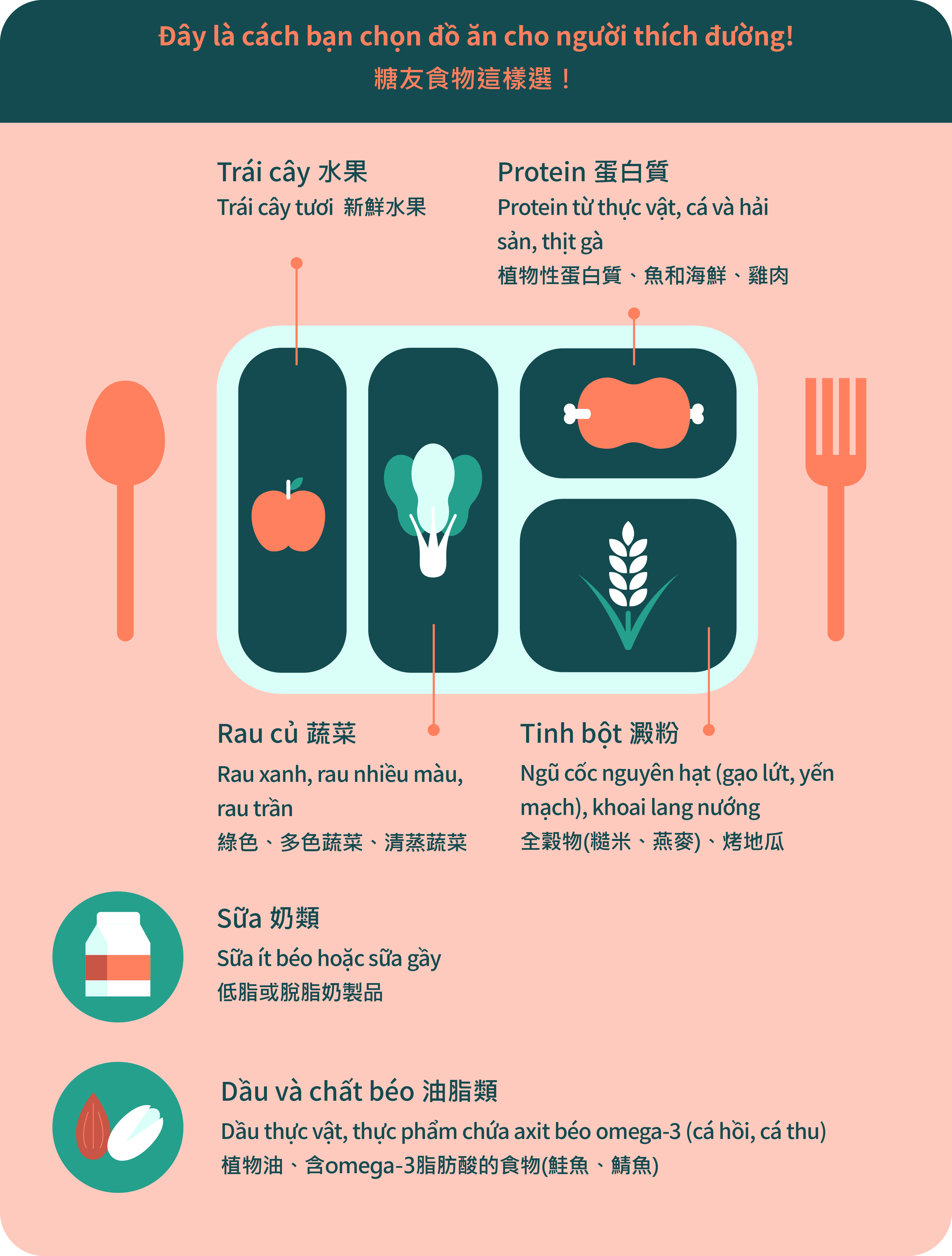 健康飲食:少油、少糖、少鹽、高纖維