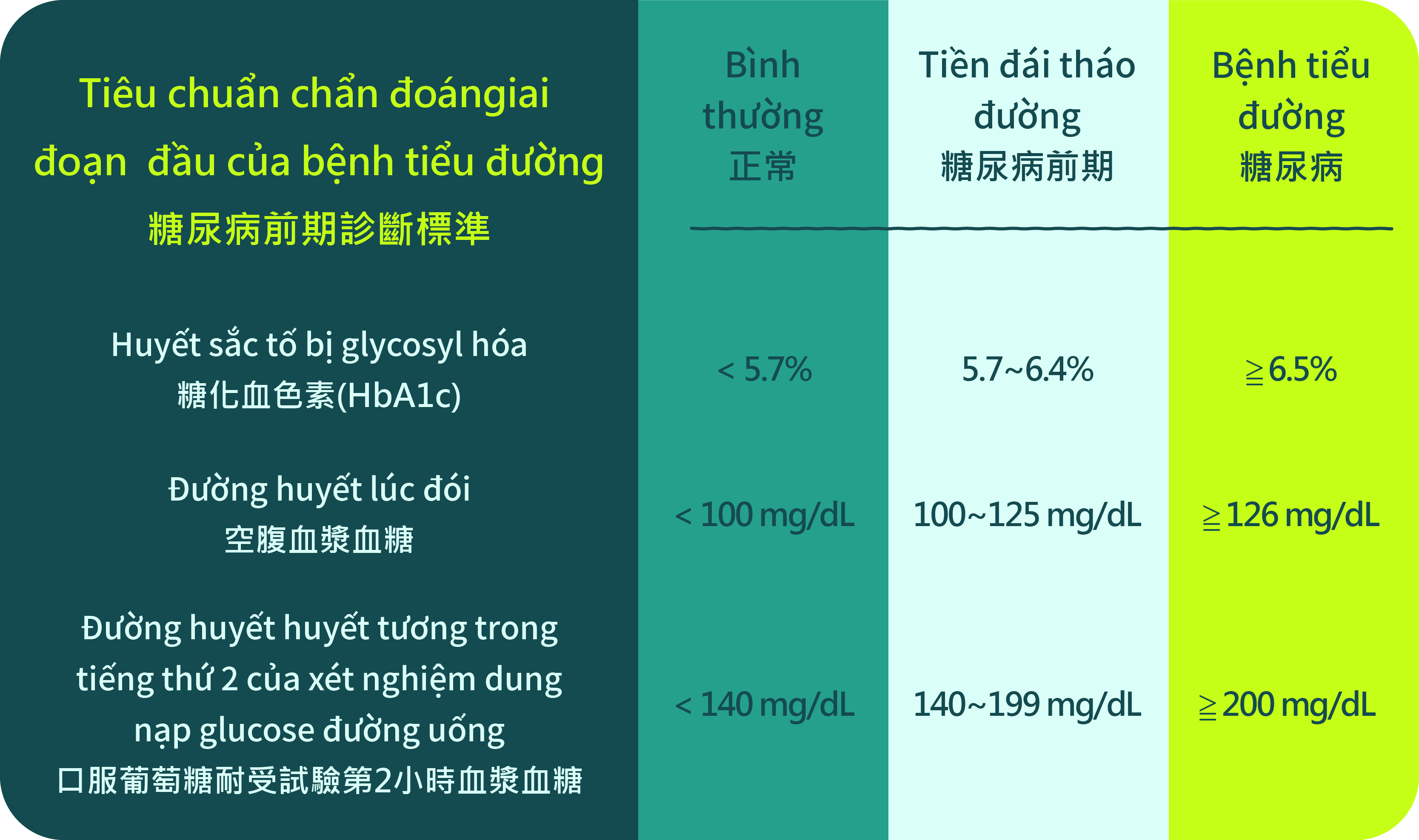 Tiêu chuẩn chẩn đoán giai đoạn đầu của bệnh tiểu đường